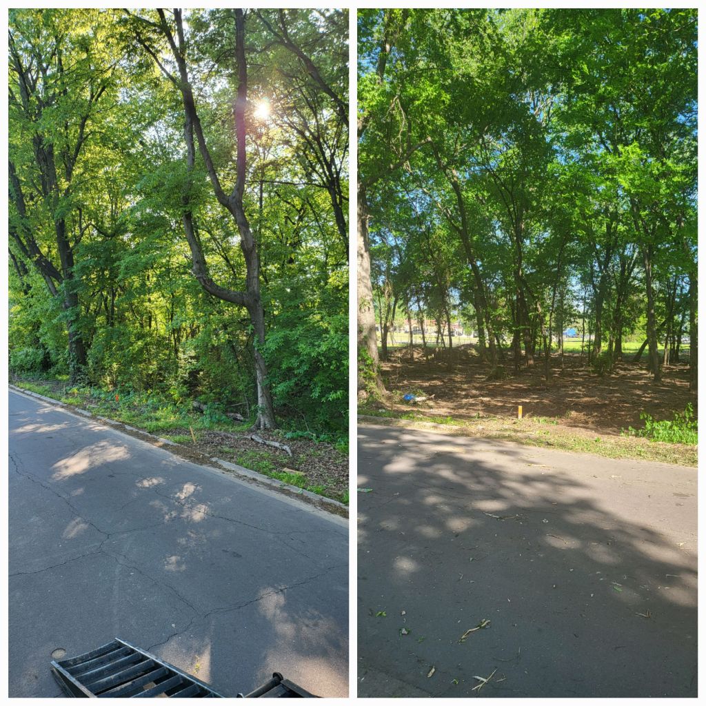 Can mulch down or cut down trees and grind tree stump to ground level. Underbrush is no challenge. Can clear out and leave selected trees to make a beautiful park like look.